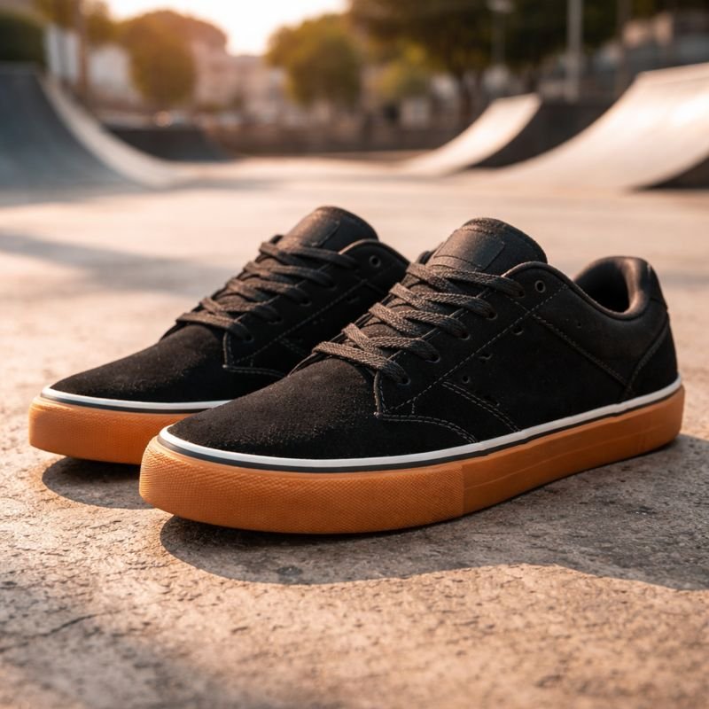 A maioria dos modelos utiliza borracha vulcanizada ou solado em cupsole, ambos conhecidos pela excelente tração. Essa aderência melhora o equilíbrio, facilita movimentos técnicos e dá mais confiança ao skatista.