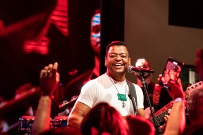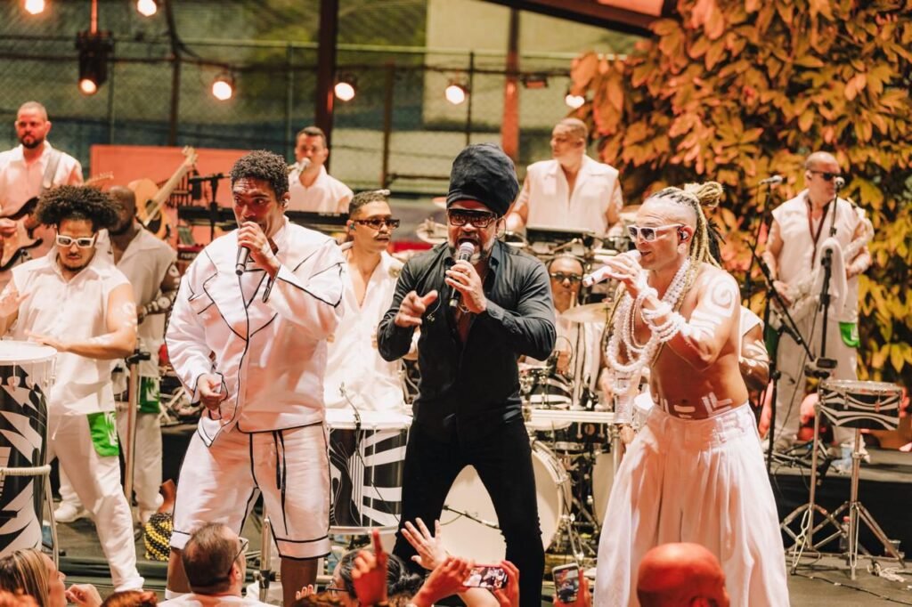 A celebração ficou completa quando Carlinhos Brown, fundador do grupo, não apenas prestigiou o ensaio, mas também subiu ao palco e cantou com a Timbalada, arrancando aplausos e emocionando o público.